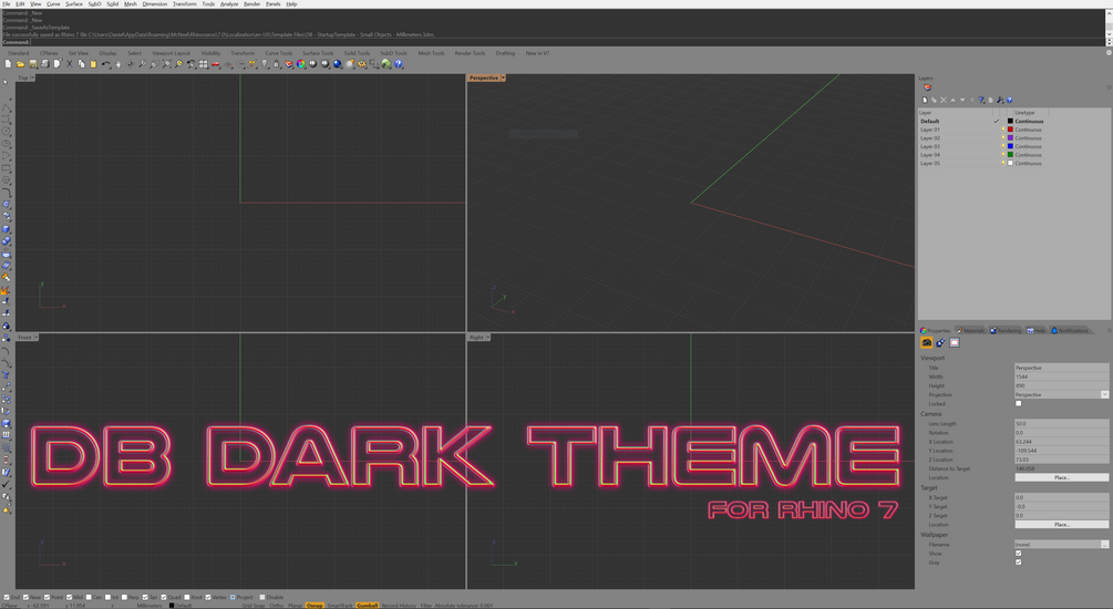 -Unpack "DB_Advanced_DarkTheme.ini" to C:\Users\UserName\AppData\Roaming\McNeel\Rhinoceros\7.0\UI